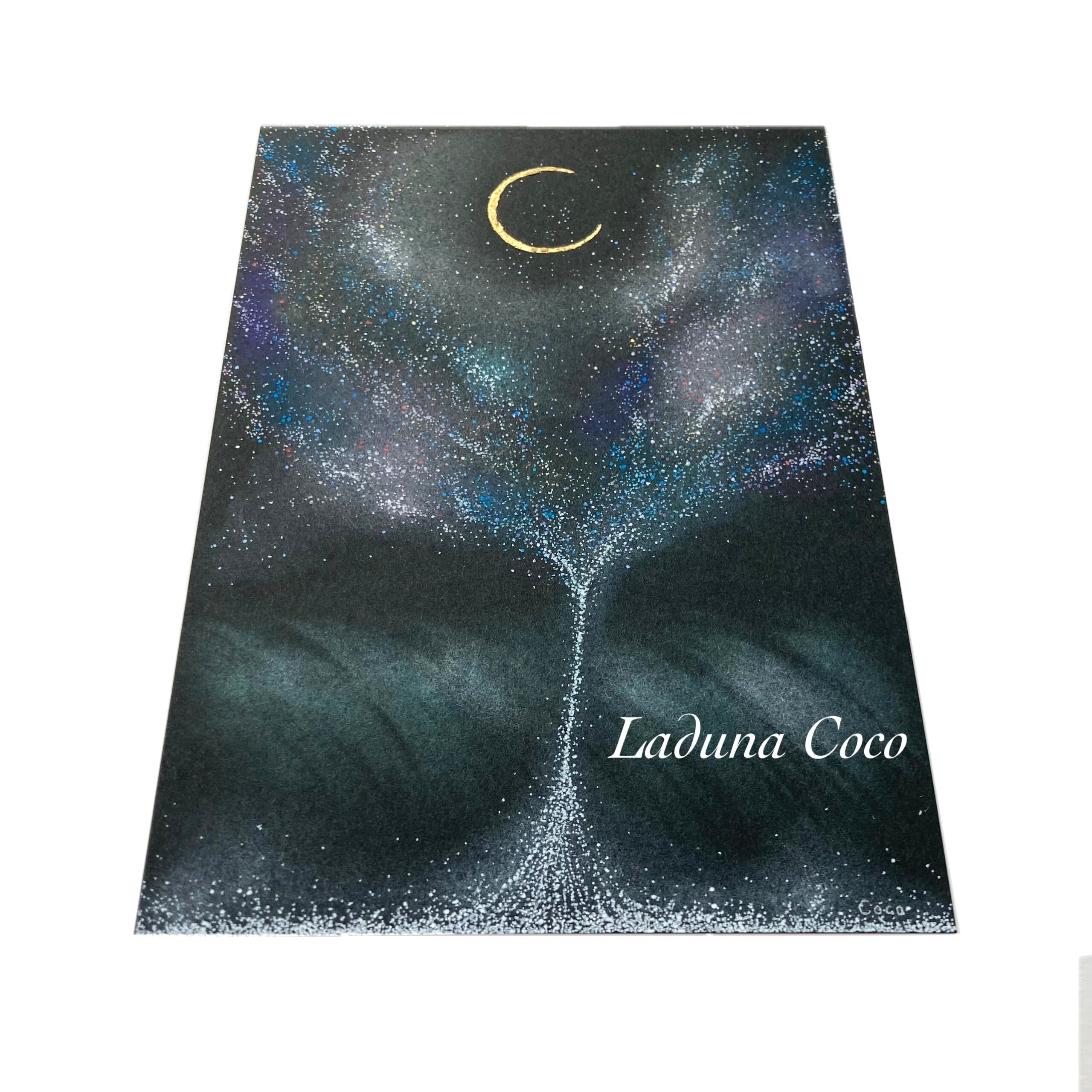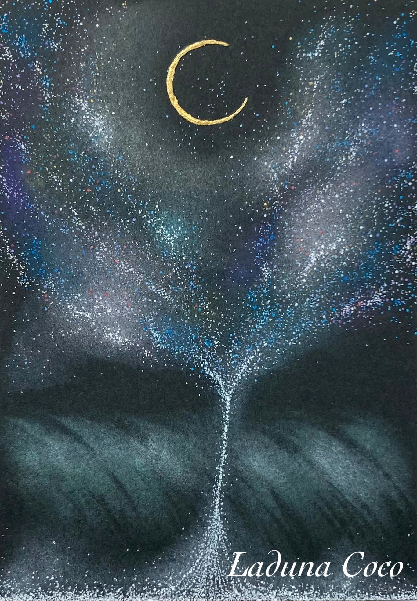 三日月を抱く点描の木(純金箔)※販売済作品は¥99表記となります
