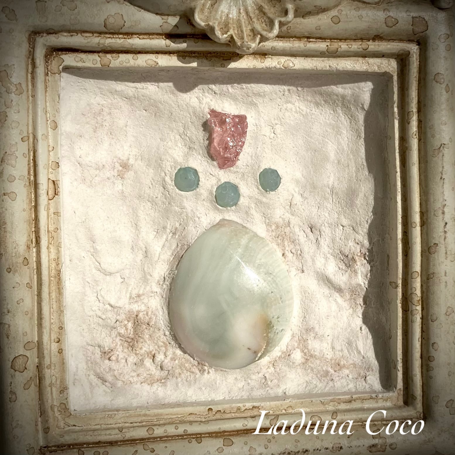 時の流れや湿度変化とともに、石を埋め込んだ土台部分と額縁の境目に細い溝が生まれたり、またゆるやかに馴染んだりすることがあります。